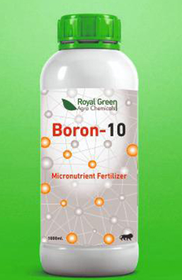 Royal green boron – 10 is emulsion concentrated formulation containing 10% min. Boron. Royal green potash 10 plays main role for the growth and development of plant, without sufficient boron, new growth comes to end. This liquid boron helps to accomplish deficiencies in wide range of crops like cracking, poor flowering etc. Using royal green boron- 10 in frequent application in small amount provide excellent results. Its clean and easy to apply.