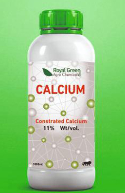 Royal green calcium is concentrated soluble liquid fertilizer formulation which contains 11% min. Calcium. Calcium is main transporter of nutrients to the plant. Royal green calcium is applied during flowering and these simulate internal chemical pathways which promote fruit set, resulting in increased fruit yields. Royal green calcium is specially formulated to provide maximum crop safety and freedom from harmful impurities.