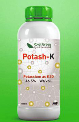 Royal green potash K is concentrated soluble liquid potash based on potassium with L- amino acid. Royal green potash – K helps for maximizing quality for fruit with greater flavour, colour and hardness. Royal green potash – K helps the crop to prevent from disease. It also increases starch and sugar accumulation and makes fruit sweeter. It can also be recommended for organic farming.